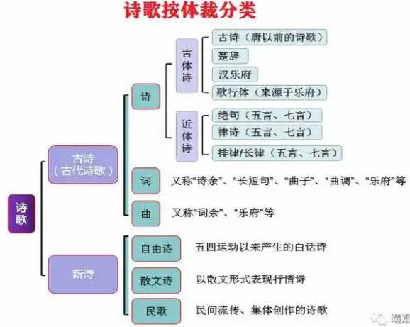 中国古代诗歌的体裁有哪些 古代诗歌包括诗、词、曲。 从诗歌的形式可分为: ①古体诗,它有四言古诗(最早出现于《诗经》)、五言古诗(成熟于汉,如《古诗十九首》)、七言古诗(成熟于唐代,如《长恨歌》)、乐府诗(标题有的加上“歌”“行”“引”“曲”“吟”“弄”等名称,如《琵琶行》)等形式。 古体诗不讲对仗,押韵较自由。古体诗的发展轨迹:《诗经》→楚辞→汉赋→汉乐府→魏晋南北朝民歌→建安诗歌→陶诗等文人五言诗→唐代的古风、新乐府。 ②近体诗,包括律诗和绝句。近体诗鼎盛于唐代,除排律外,篇有定句,句有定字,字有定声,韵有定位。绝句分五言绝句(五绝)、七言绝句(七绝)两种,律诗分五言律诗(五律)、七言律诗(七律)、排律三种。 ③词,鼎盛于宋代,按字数多少,分为小令(58字内)、中调(59—90字内)和长调(91字以上)三种形式。词调有定格,句有定数,字有定声,韵有定位。词有单调和双调之分,双调就是分两大段,两段的平仄、字数是相等或大致相等的,单调只有一段。词的一段叫一阙或一片,第一段叫前阙、上阙、上片,第二段叫后阙、下阙、下片。 ④曲,又称为词余、乐府。曲鼎盛于元代,有散曲和杂剧两种形式。散曲又有小令(短小的曲子)和套数(又名“套曲”)两种形式。 古代诗歌史上被称为双璧的是 1、乐府双璧:《木兰诗》、《孔雀东南飞》 汉乐府诗《孔雀东南飞》和北朝民歌《木兰诗》合称为“乐府双璧”。这两首诗歌都是叙事长诗,以其深刻的社会思想意义和极高的艺术成就,为历代文人所推崇。《木兰诗》又名《木兰辞》,是北朝民歌;《孔雀东南飞》又名《古诗为焦仲卿妻作》,是汉代古乐府民歌杰作之一,也是现存下来的最早的一首长篇叙事诗。 《孔雀东南飞》原为民间歌曲,故事叙述汉末建安年间,讲述了一个名叫刘兰芝的女子与焦仲卿双双殉情而死的悲惨故事。 《木兰诗》是我国南北朝时期北方的一首长篇叙事民歌,记述了木兰女扮男装,代父从军,征战沙场,凯旋回朝,建功受封,辞官还家的故事,充满传奇色彩。 2、中国文学的双璧:《诗经》、《楚辞》 《诗经》,是中国古代诗歌开端,是我国最早的一部诗歌总集,收集了西周初年至春秋中叶的诗歌,共305篇,又称为“诗三百”。《诗经》的作者佚名,绝大部分已经无法考证,传为尹吉甫采集、孔子编订。诗经在内容上分为《风》、《雅》、《颂》三个部分。《风》是周代各地的歌谣;《雅》是周人的正声雅乐,又分《小雅》和《大雅》;《颂》是周王庭和贵族宗庙祭祀的乐歌,又分为《周颂》、《鲁颂》和《商颂》。《诗经》内容丰富,反映了劳动与爱情、战争与徭役、压迫与反抗、风俗与婚姻、祭祖与宴会等方方面面,是周代社会生活的一面镜子,是现实主义诗歌的源头。 《楚辞》是中国文学史上第一部浪漫主义诗歌总集,相传是屈原创作的一种新诗体。“楚辞”的名称,西汉初期已有之,至刘向乃编辑成集。东汉王逸作章句。原收战国屈原、宋玉及汉代淮南小山、东方朔、王褒、刘向等人辞赋共十六篇。后王逸增入己作《九思》,成十七篇。全书以屈原作品为主,其余各篇也是承袭屈赋的形式。 3、史学双璧:《史记》、《资治通鉴》 《史记》由西汉史学家司马迁所著,是中国历史上第一部贯穿古今的纪传体通史,全书130卷,约52万余字,记载了从中华民族的始祖黄帝到汉武帝太初四年约3000年的历史。全书分为五大部分,计有十二本纪、十表、八书、三十世家、七十列传。被鲁迅称之为“史家之绝唱、无韵之离骚”。 北宋著名政治家司马光所撰的《资治通鉴》,全书294卷,约300万字,记述了从公元前403年周威烈王23年至公元959年即五代后周世宗显德六年总共1362年的历史。 4、“古典戏曲双壁”:《西厢记》、《牡丹亭》 《崔莺莺待月西厢记》(简称《西厢记》,又称《王西厢》、《北西厢》)是元代王实甫创作杂剧。全剧叙写了书生张生(名珙字君瑞)与相国小姐崔莺莺在仕女红娘的帮助下,冲破孙飞虎、崔母、郑恒等人的重重阻挠,终成眷属的故事。 《牡丹亭还魂记》(简称《牡丹亭》,也称《还魂梦》或《牡丹亭梦》)是明代剧作家汤显祖创作的传奇(剧本),刊行于明万历四十五年(1617年)。该剧描写了官家千金杜丽娘对梦中书生柳梦梅倾心相爱,竟伤情而死,化为魂魄寻找现实中的爱人,人鬼相恋,最后起死回生,终于与柳梦梅永结同心的故事。 5、清代戏曲双璧:《桃花扇》、《长生殿》 《桃花扇》是清代文学家孔尚任创作的传奇剧本,于清康熙三十八年(1699年)六月完稿,康熙四十七年(1708年)刊成初版。《桃花扇》所写的是明代末年发生在南京的故事。全剧以侯方域、李香君的悲欢离合为主线,展现了明末南京的社会现实。同时也揭露了弘光政权衰亡的原因,歌颂了对国家忠贞不渝的民族英雄和底层百姓,展现了明朝遗民的亡国之痛。 《长生殿》是清初剧作家洪昇创作的传奇(戏剧),共二卷。该剧定稿于康熙二十七年(1688年)。全剧共五十出。《长生殿》重点描写了唐朝天宝年间皇帝昏庸、政治腐败给国家带来的巨大灾难,导致王朝几乎覆灭。剧本虽然谴责了唐明皇的穷奢极侈,但同时又表现了对唐明皇和杨贵妃之间的爱情的同情,间接表达了对明皇统治的同情,还寄托了对美好爱情的理想。 宜城教育资源网www.ychedu.com |