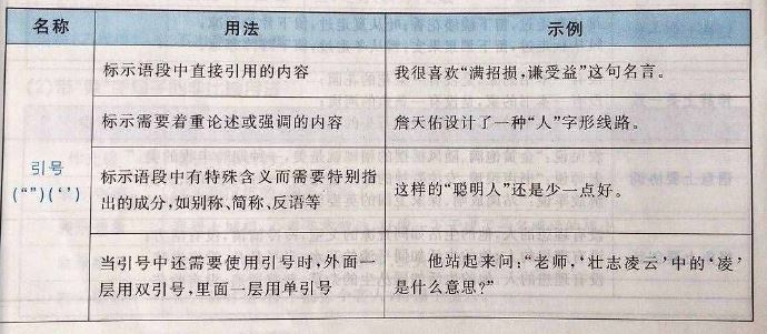 1、象声词、音译词要用引号标示。举例:傍晚,“呱呱”地叫起来,啄木鸟“笃笃”地啄着树干,甲虫“嗡嗡”地叫。 2、文中的绰号要标引号。例如,我孩子的时候,在斜对门的豆腐店确乎终日坐着一个杨二嫂,人们都叫她“豆腐西施”。 3、需要强调的专有名词要用引号。巴金长篇小说《家》:觉英、觉群和觉世也买了些“滴滴金”、“地老鼠”和“神书带箭”来燃放。 4、标明行文中直接引用的话。例如,在《社会学和社会心理学的关系》一文中,王康指出:“社会心理学是研究社会环境对人的思想、感情、态度、行为产生什么影响的学科。” 5、表示需要着重论述的对象。举例:古人对于写文章有个基本要求,叫做“有物有序”。“有物”就是要有内容,“有序”就是要有条理。 6、表示具有特殊含义的词语。例如,在外国地摊上卖的书,到了国内摇身一变被摔成了“传世经典”。读者一再受愚弄,这种现象的蔓延是发人深思的。 7、文章中的简称要用引号。举例:市场经济作为发展社会生产力的一种方式和途径,本没有姓“资”姓“社”的问题。 8、表示节日、纪念日的数字部分和重大历史事件用数字标示的部分要用引号。例如,“五四”至今已有二十年,今年才在全国定为青年节,这件事包含着一个重要的意义。